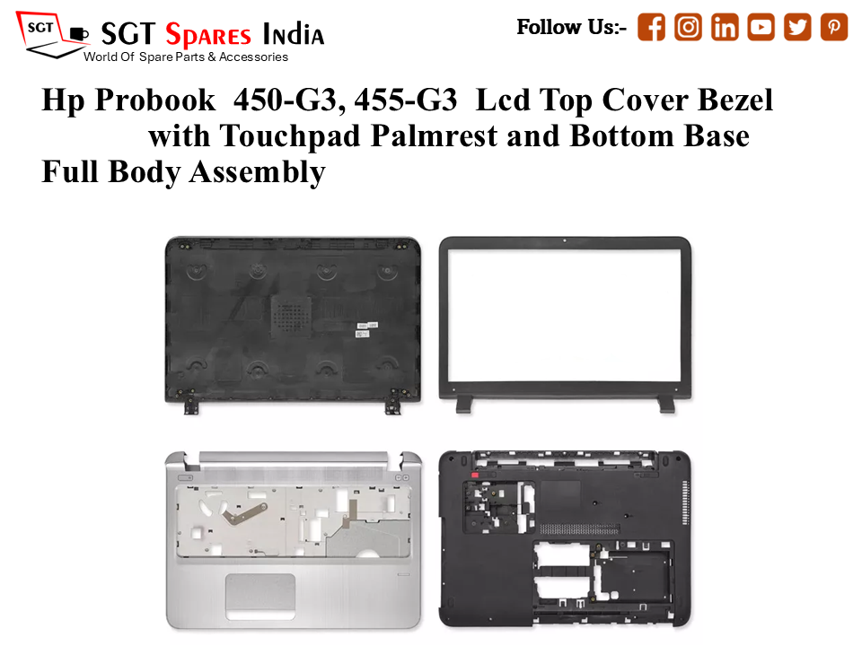 Hp Probook 450-G3, 455-G3 Laptop Lcd Top Cover Bezel with Touchpad Palmrest and Bottom Base Full Body Assembly